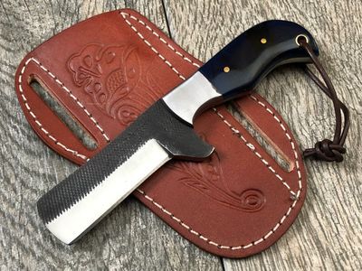 The handle of the Cowboy Bull Cutter Knife offers a secure and comfortable grip, and the knife's blade is made of durable Rasp steel. Its serrations make short work of leather, bone, or wood, and its straight shape maximizes leverage and control. In addition, the medium-sized blade provides excellent control whether pruning, cutting wood, or de-hiding livestock.