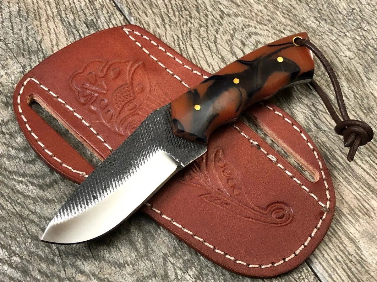Durable Rasp Steel Blade: The knife's blade is made of durable Rasp steel, known for its strength and longevity. The serrations on the blade make it efficient in cutting through leather, bone, or wood.